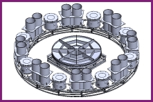 非平衡結(jié)構(gòu)的轉(zhuǎn)體球鉸裝置(非對稱轉(zhuǎn)體球鉸、抗拉拔轉(zhuǎn)體球鉸)設(shè)計(jì)承載力一般不超過30000噸(300000KN),適用于轉(zhuǎn)體橋左右幅轉(zhuǎn)體重量(配重后)極不平衡的項(xiàng)目。該裝置可采用電機(jī)驅(qū)動/齒輪齒條傳動的轉(zhuǎn)體方式,轉(zhuǎn)體速度無極可調(diào),可正反轉(zhuǎn),同時(shí)可配合抗拉拔滑道同步使用,提高大懸臂轉(zhuǎn)體梁的穩(wěn)定性。該類型轉(zhuǎn)體裝置的推出,填補(bǔ)了國內(nèi)城市建筑密集區(qū)域無法進(jìn)行橋梁轉(zhuǎn)體的空白。